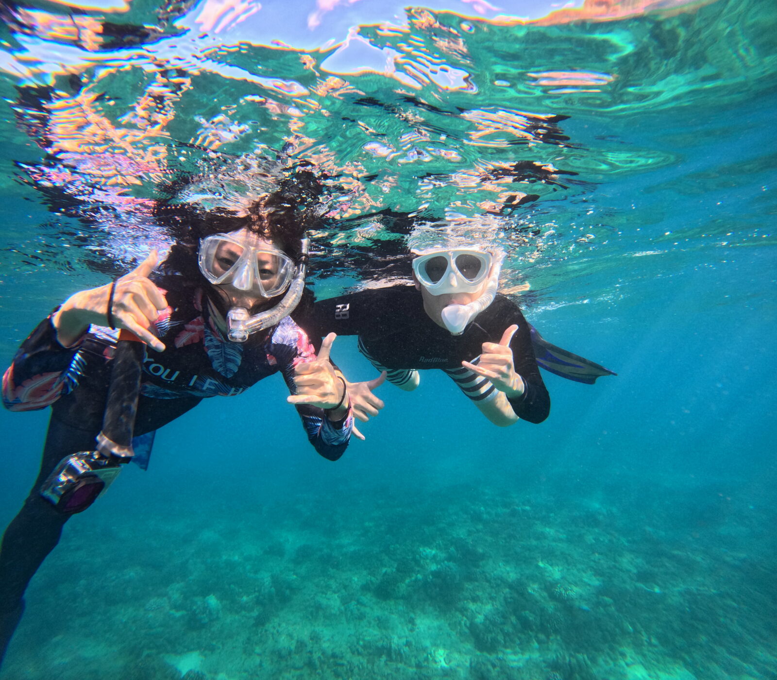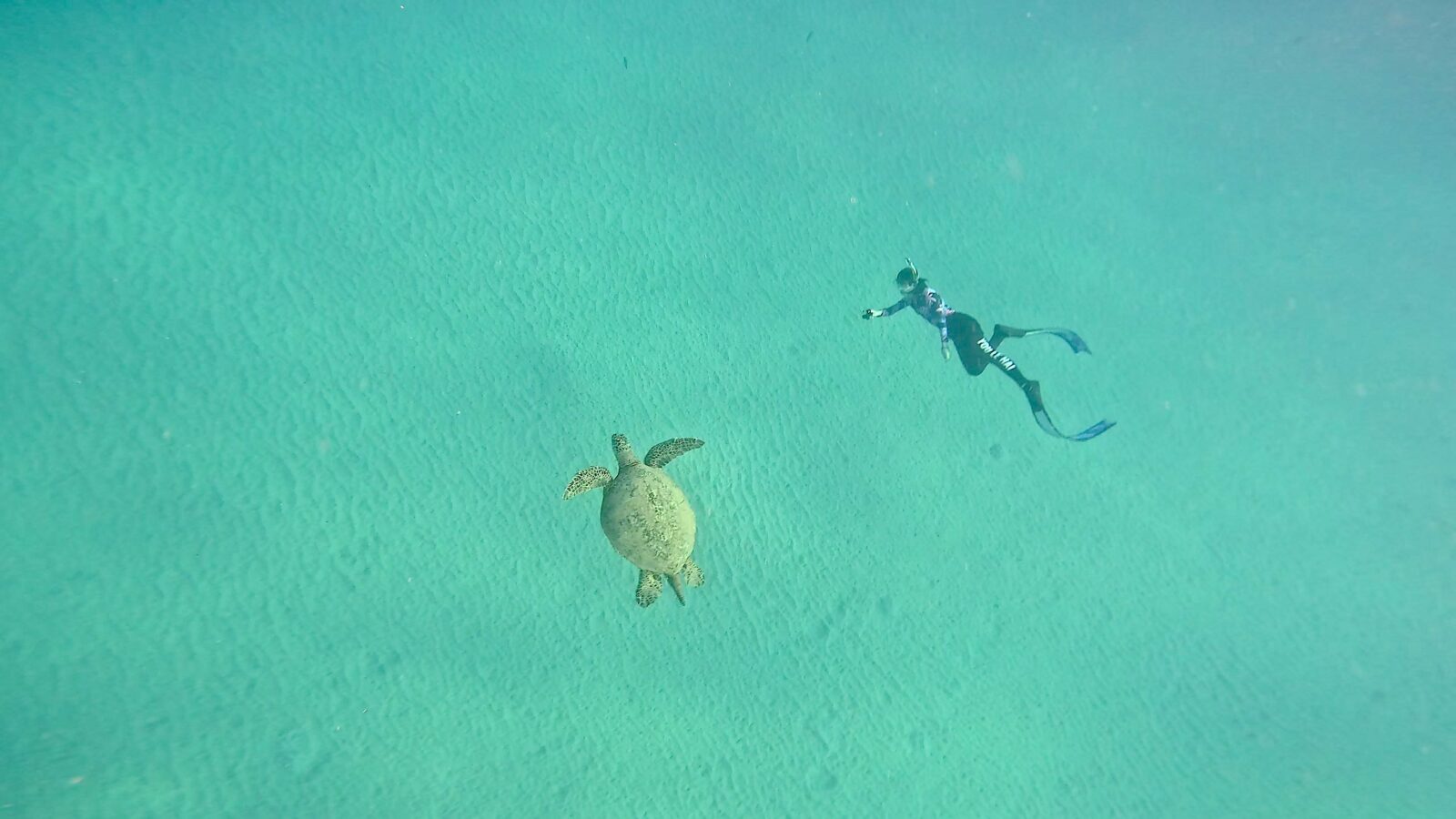 お天気&海のコンディション良好!スキンダイビング歴の長い皆さんは、ウォーミングアップから、幸運を呼ぶホヌ様にダイブ!