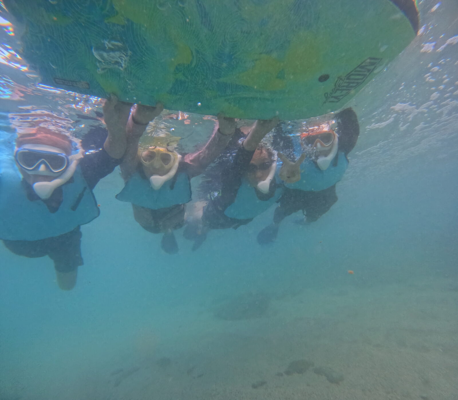 少し濁りのあるコンディションでしたが、浅瀬で練習を済ませたらシュノーケリングスタート!