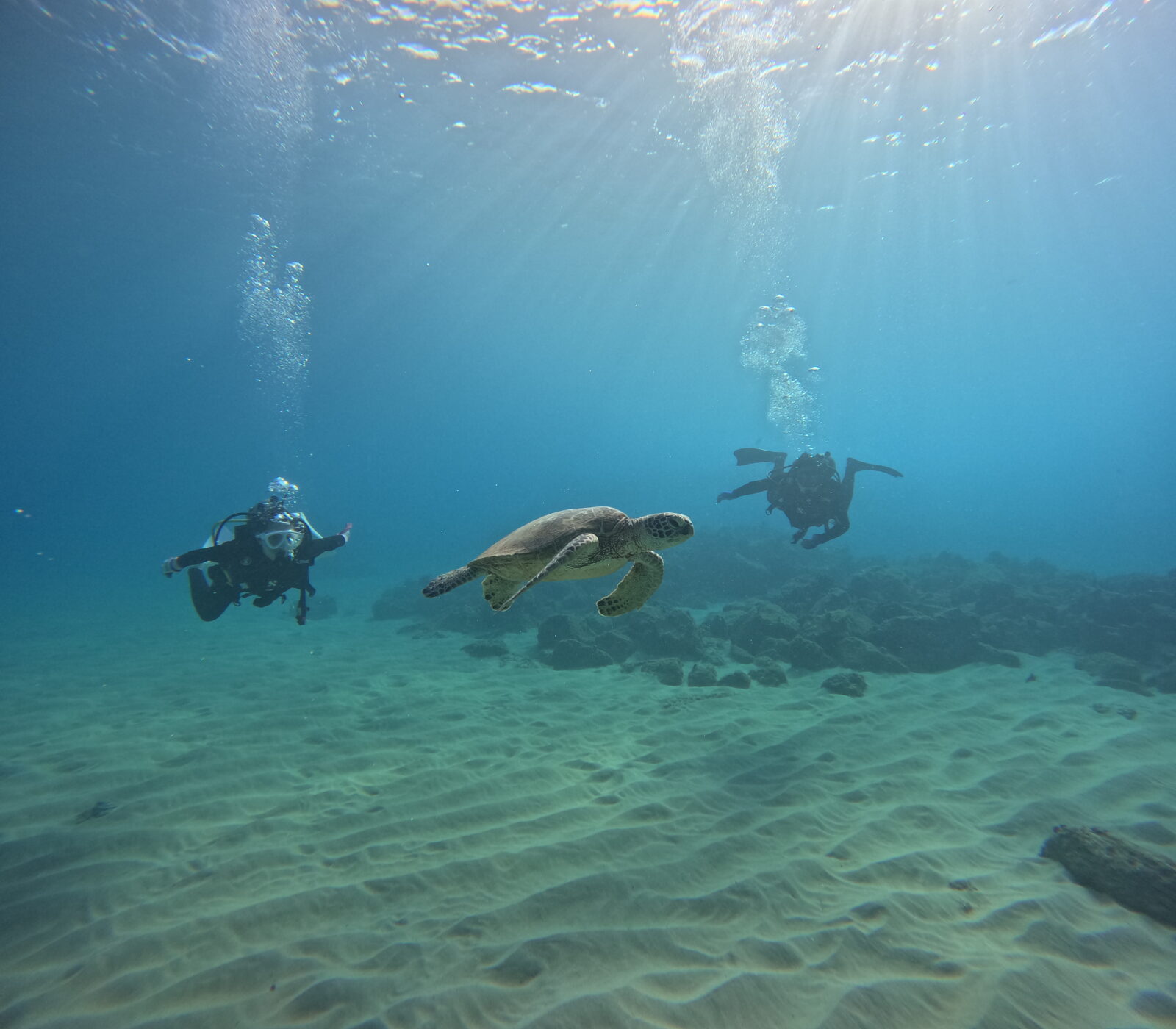中性浮力を取りながら、幸運を呼ぶホヌ様と泳ぐのも練習の1つ!
