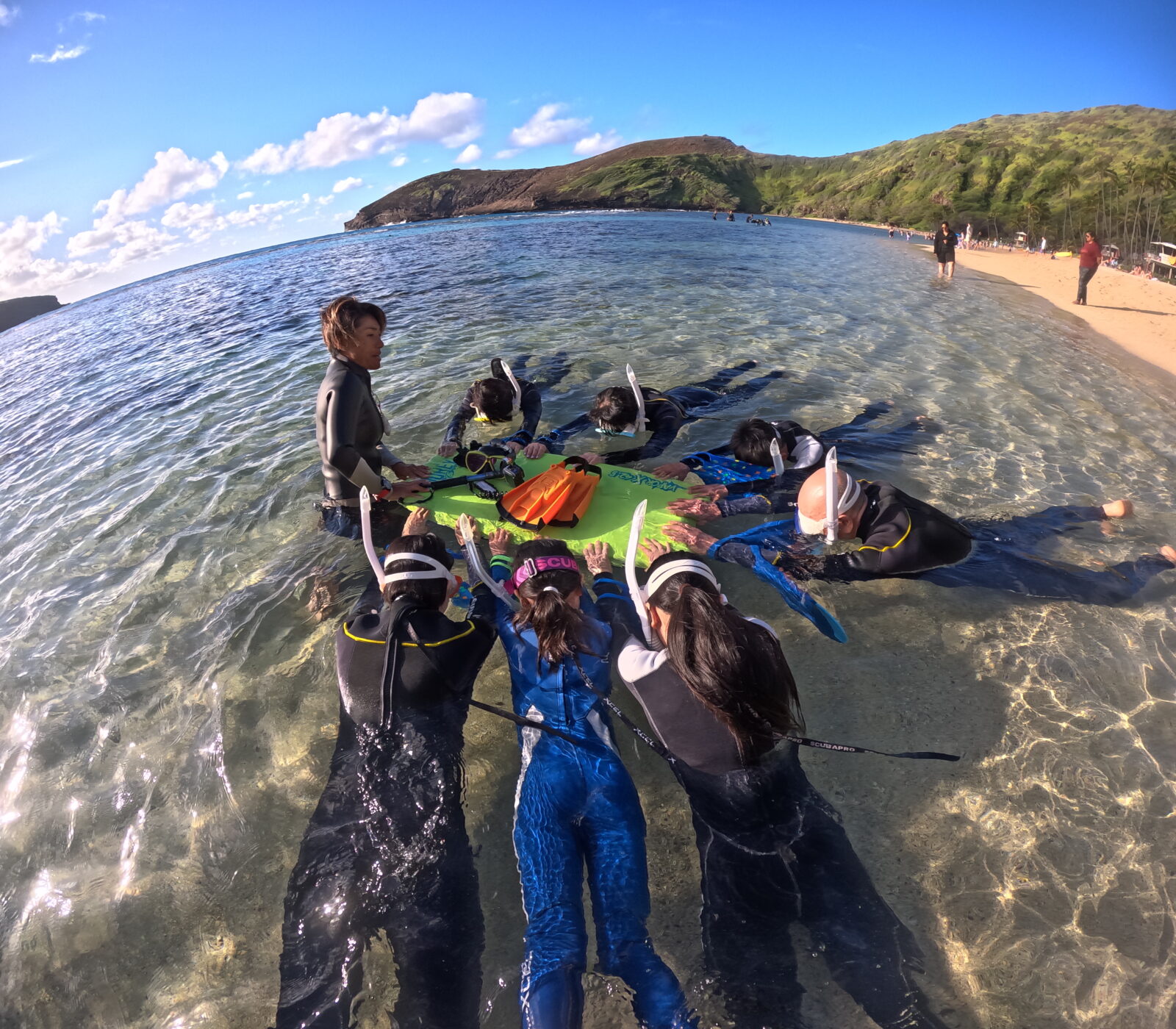 波なし!お天気よし!まずは浅瀬で、呼吸&トラブル回避の練習をしていきます。