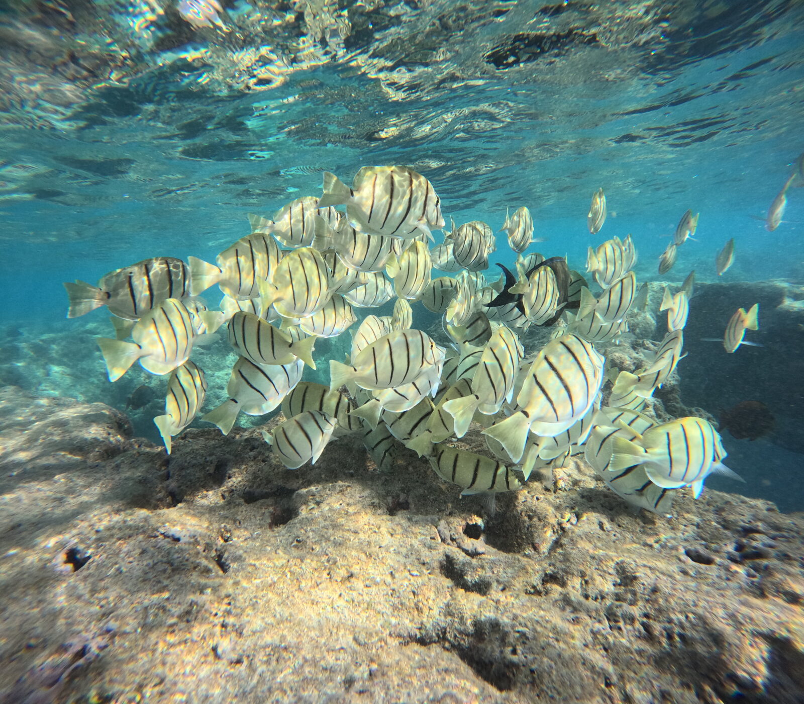 波もなく、抜群の透明度の中、シマハギの群れがお出迎えしてくれました!