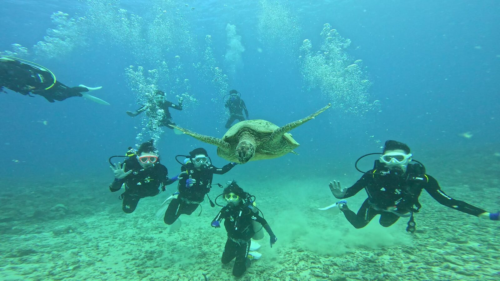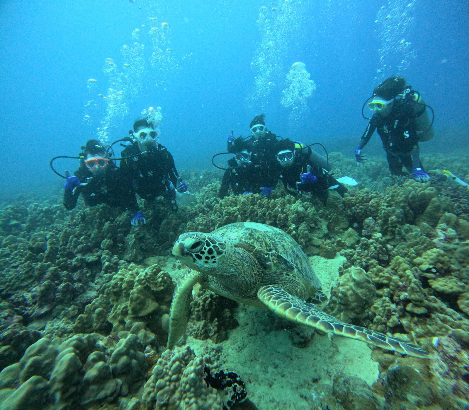 2ダイブ目は、ウミガメポイントへ!巨大なウミガメがゴロゴロ!一緒に記念撮影できました!