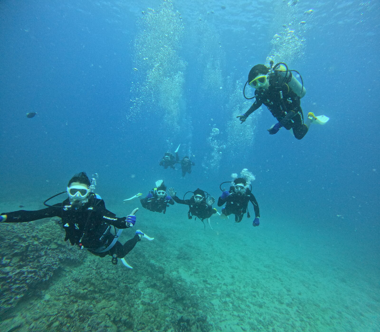 1ダイブ目は、呼吸や耳抜き、水中での泳ぐ感覚をメインにしっかり練習していきます。