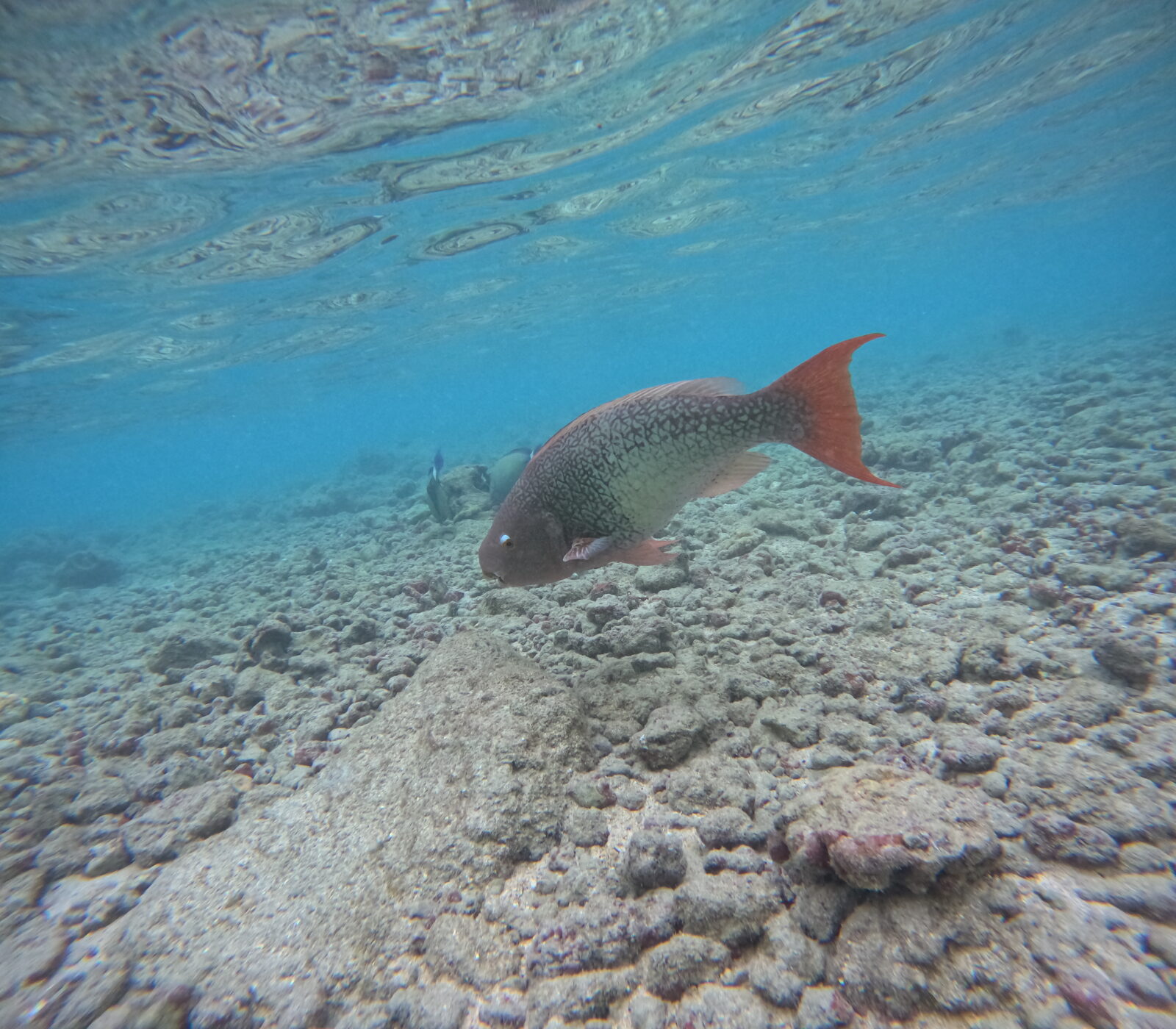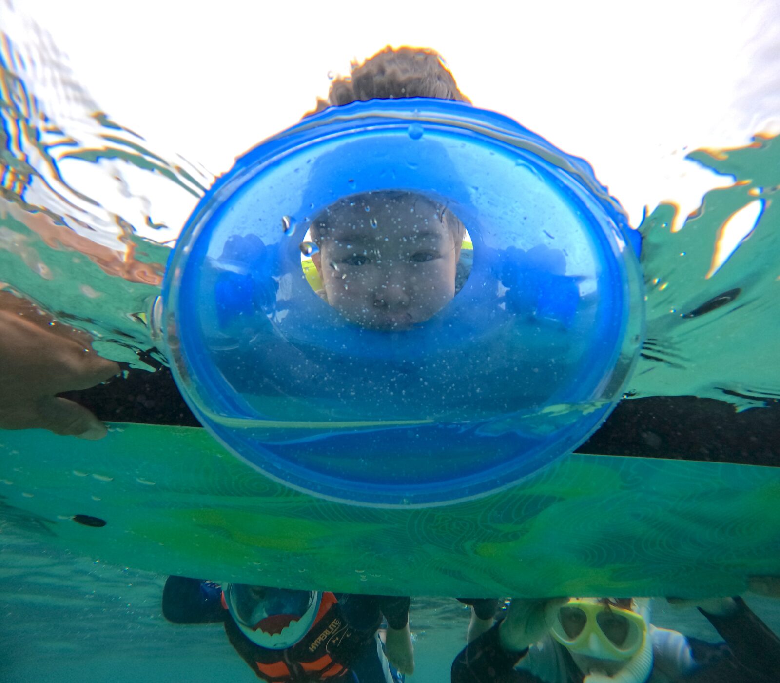 お子様の初シュノーケリング大成功!とっても上手にお魚観察できました!
